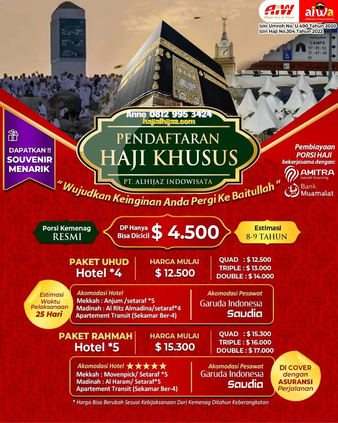 Cukup siapkan dana Rp 8 Jutaan, anda sudah dapat Nomor Porsi Haji Khusus dengan Masa Tunggu 9 Tahun berangkat