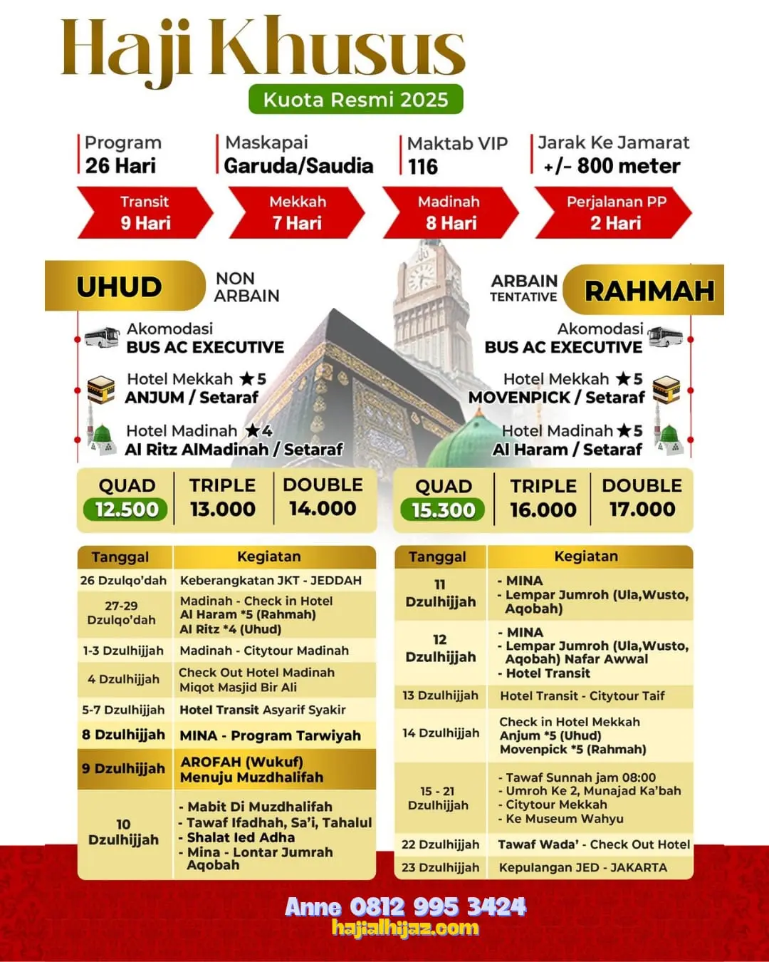 Alhijaz travel menyelenggarakan perjalanan Paket Haji Khusus dengan layanan dan fasilitas istimewa,